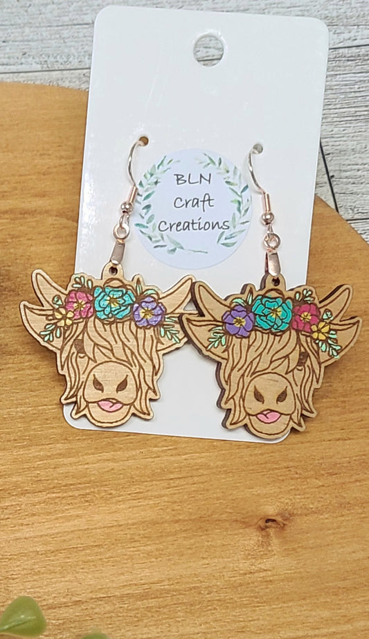 Highland cow with flowers earrings
