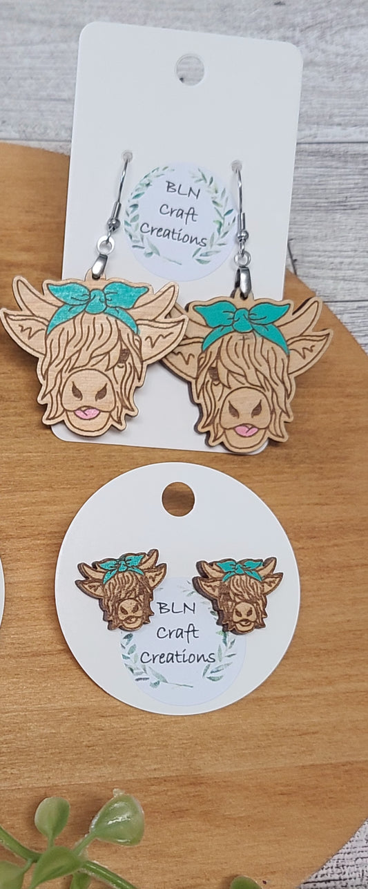 Highland cow with bow earrings